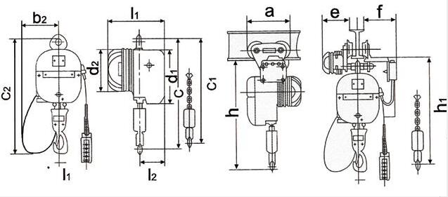 PK型環(huán)鏈電動(dòng)葫蘆技術(shù)尺寸圖